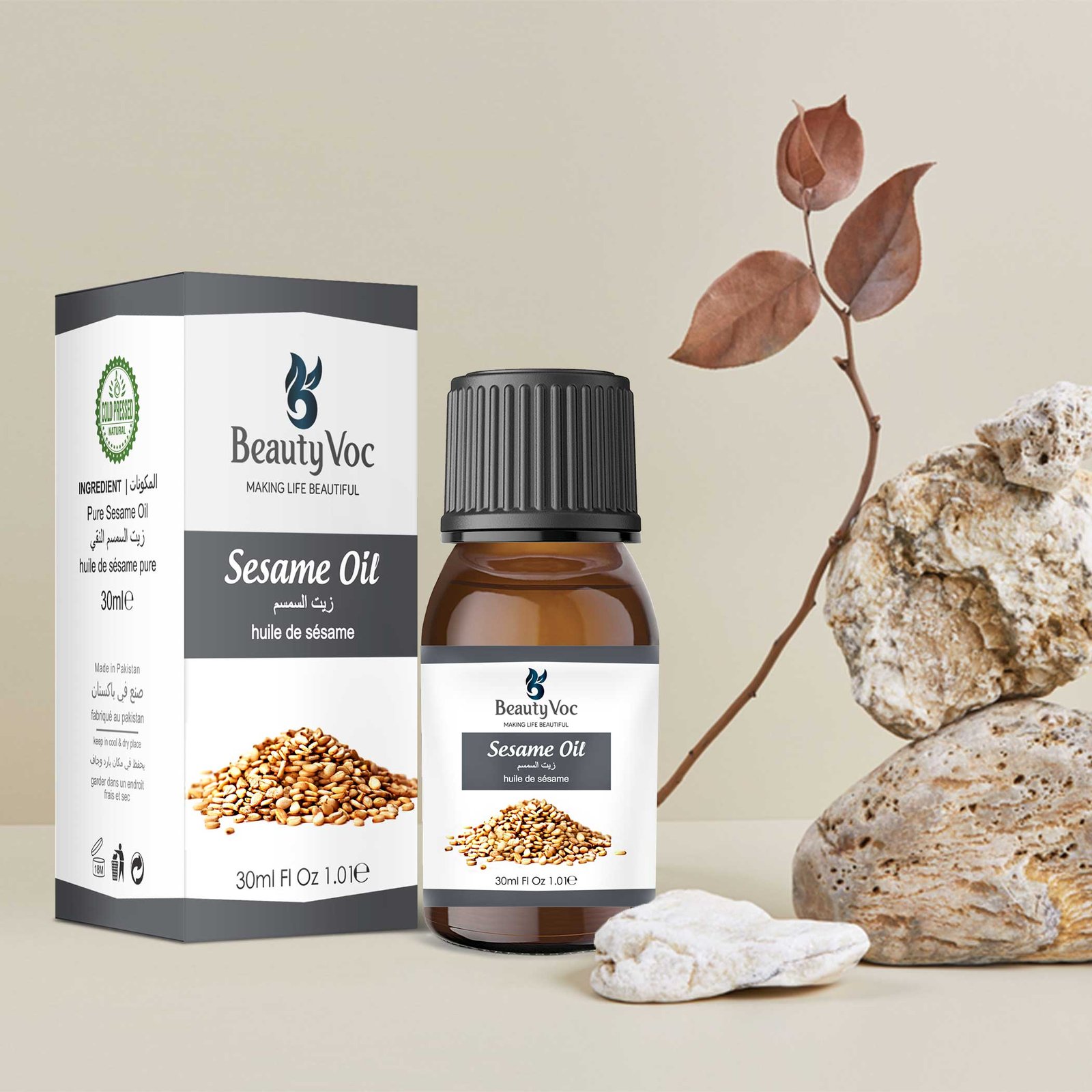 Beauty Voc’s Sesame Oil, gracefully presented in a convenient 30ml bottle. Our Sesame Oil is carefully extracted from the finest sesame seeds, capturing its nourishing and rejuvenating properties. With its versatile uses and light texture, this oil is an essential addition to your beauty and wellness routine. Packed with vitamins, minerals, and antioxidants, our Sesame Oil helps to moisturize, soften, and enhance the skin’s natural radiance. It can also be used to nourish and strengthen hair, promoting a healthy and lustrous shine. Experience the transformative power of Beauty Voc’s Sesame Oil and embrace the natural secrets to vibrant, nourished beauty.